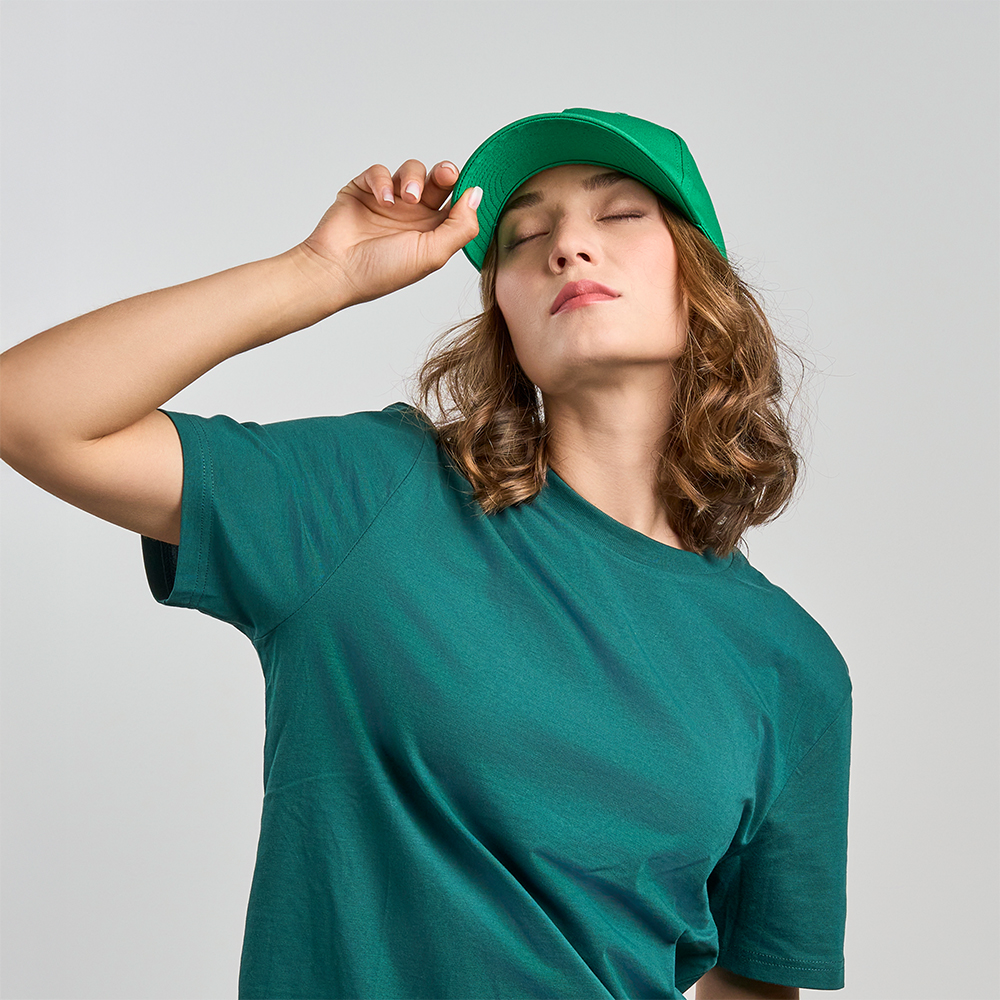 Boné desportivo estruturado em algodão, com coroa frontal larga ideal para personalizar. Com 5 painéis, 6 ilhoses para ventilação, pala curva e fecho de metal, o boné combina estilo e funcionalidade. Feito com 80% algodão orgânico e 20% algodão reciclado, garantindo um toque suave e sustentável.